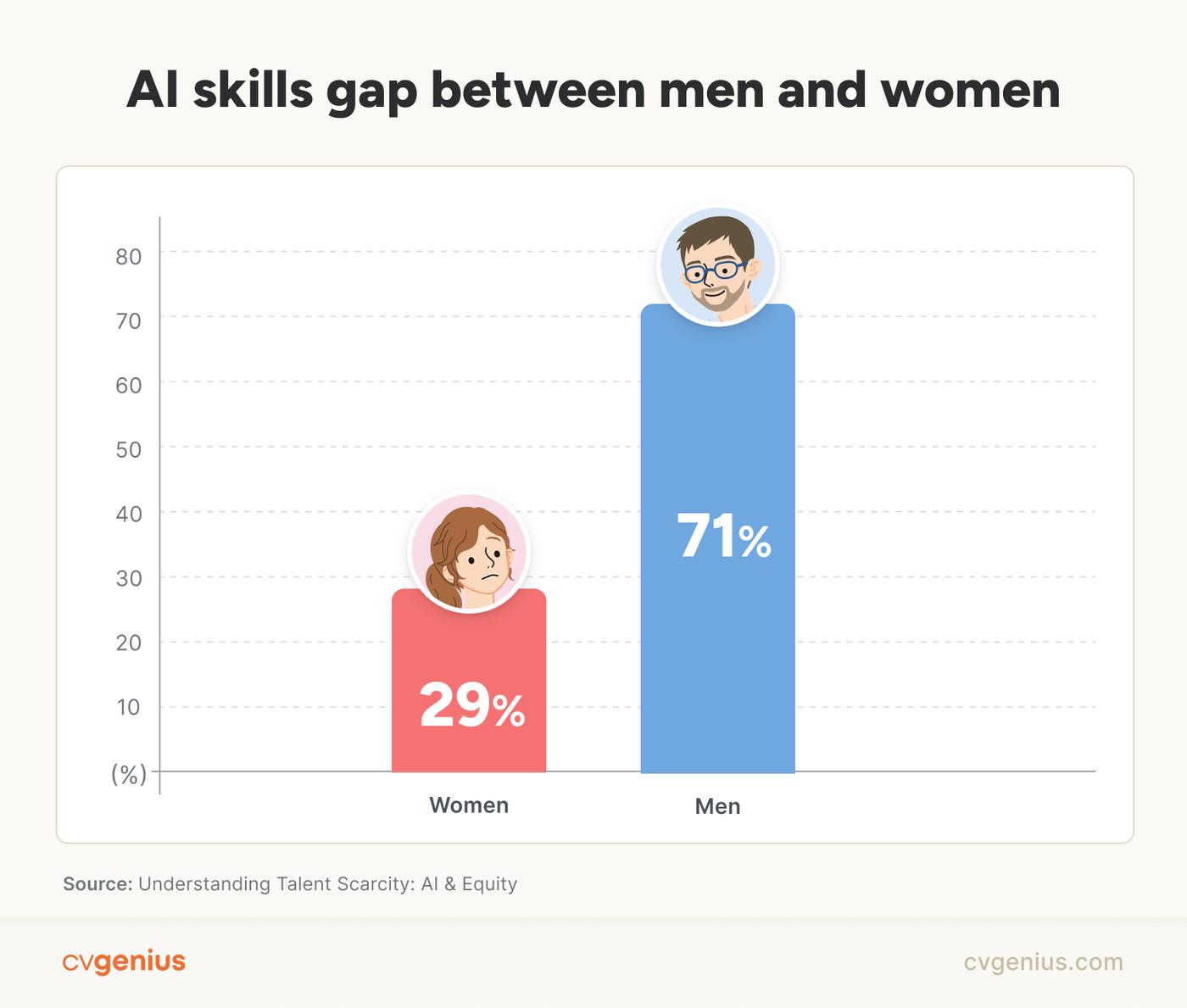 - 29% of women report having AI skills, compared to 71% of men