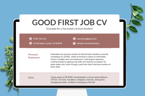 To help you see what a good CV looks like, here are five good CV examples for a first job that you can base your CV on.