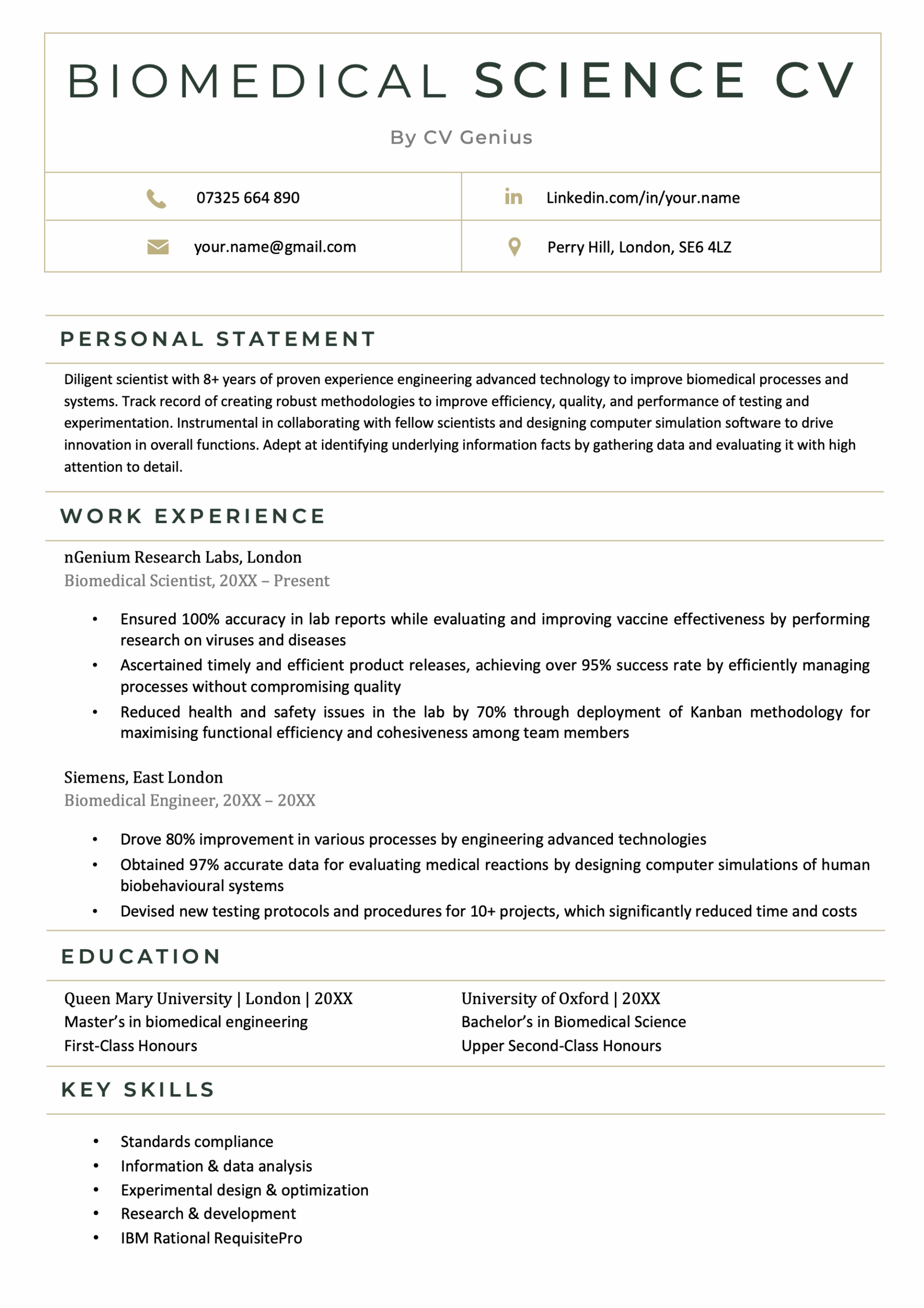 Biomedical science CV template (text format)