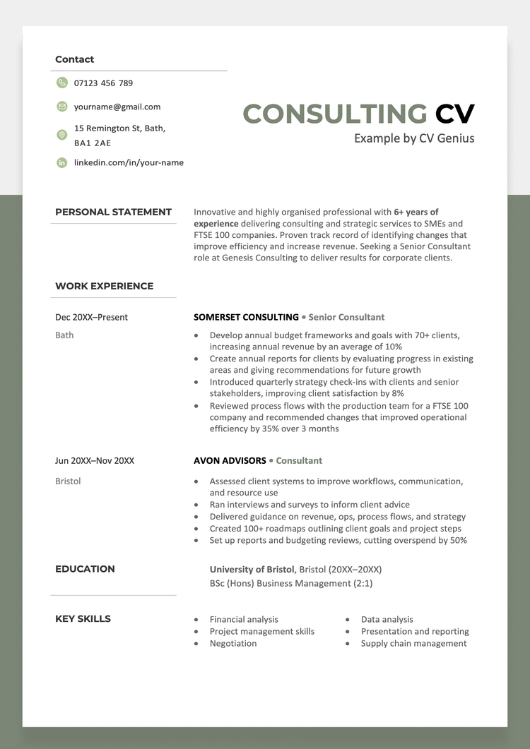 Always give concrete examples when highlighting a relevant consulting skill, as simply listing them on your CV is vague and unconvincing: