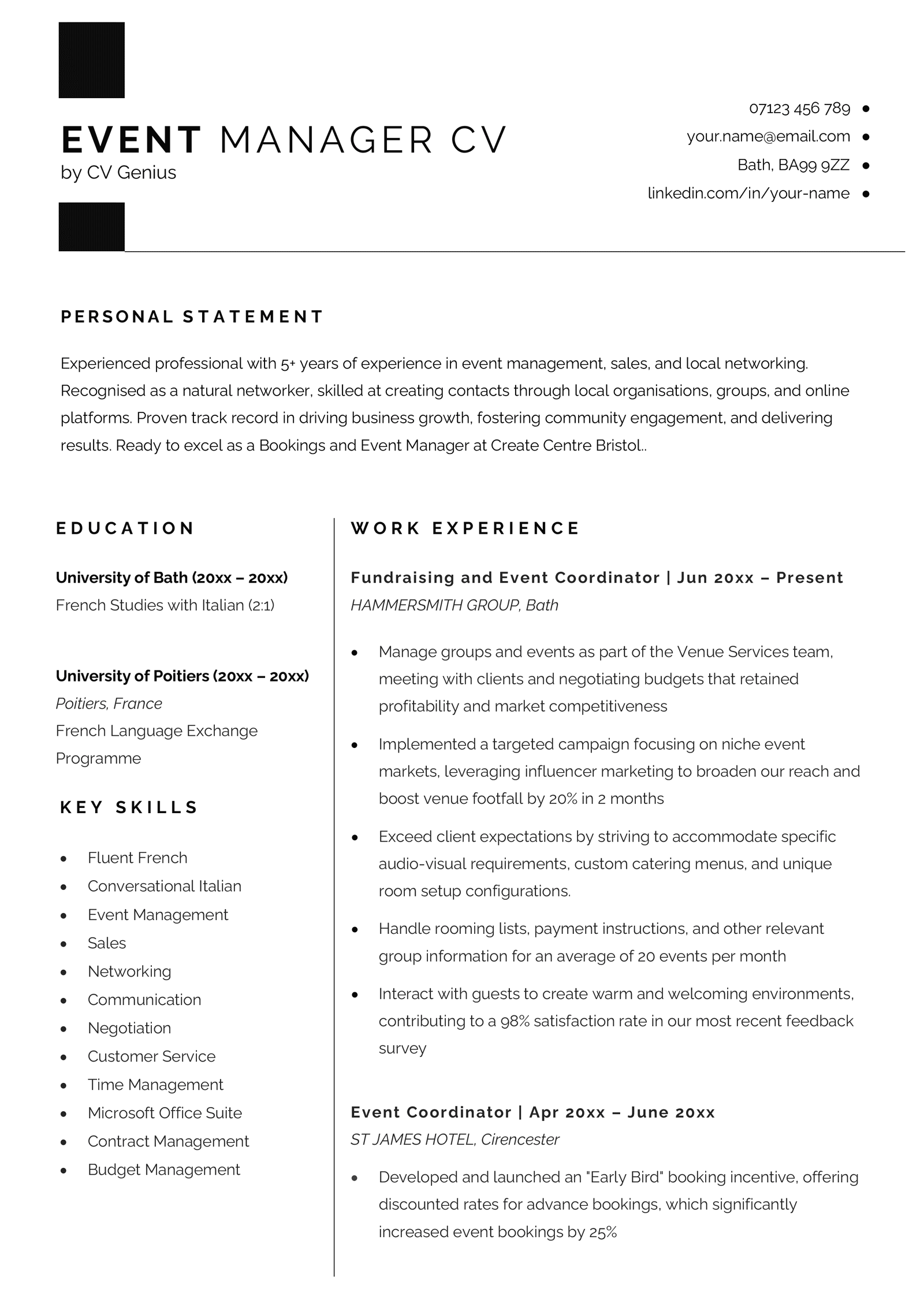 Event Manager CV Template (Text Format)