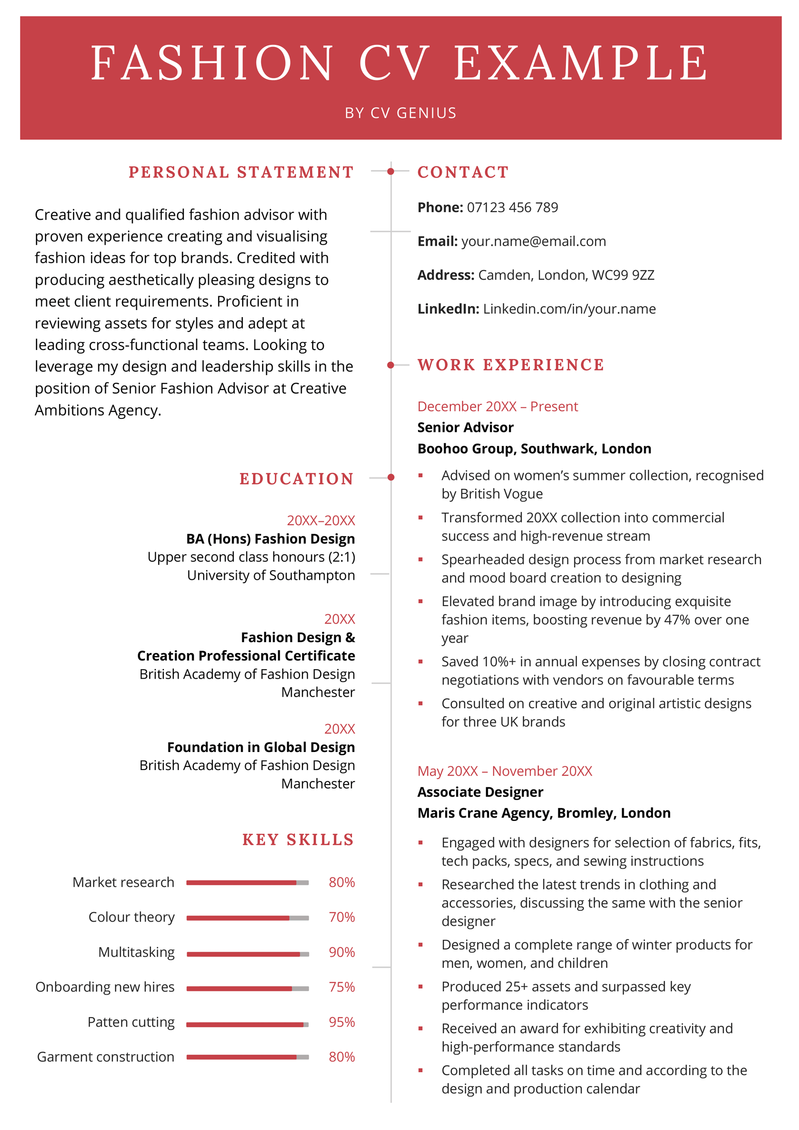 Applying for a fashion stylist role? Use this CV example as a template to help you get started: