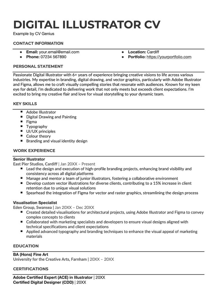Illustrator CV Template (Text Format)