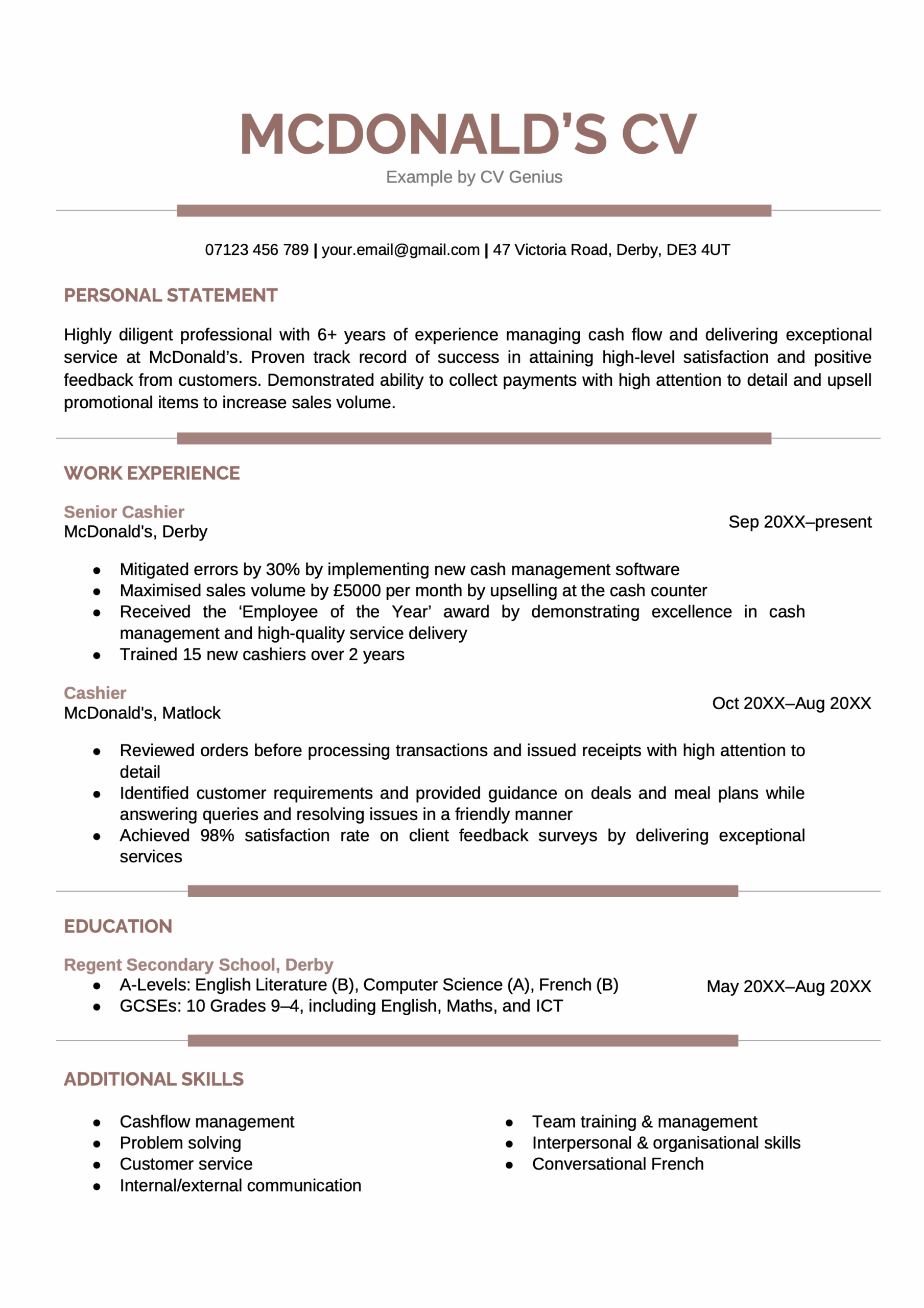 16+ skills for a McDonald’s CV