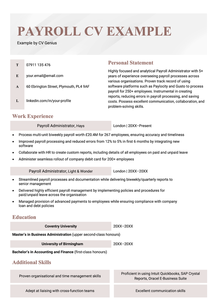 Payroll CV template (text format)