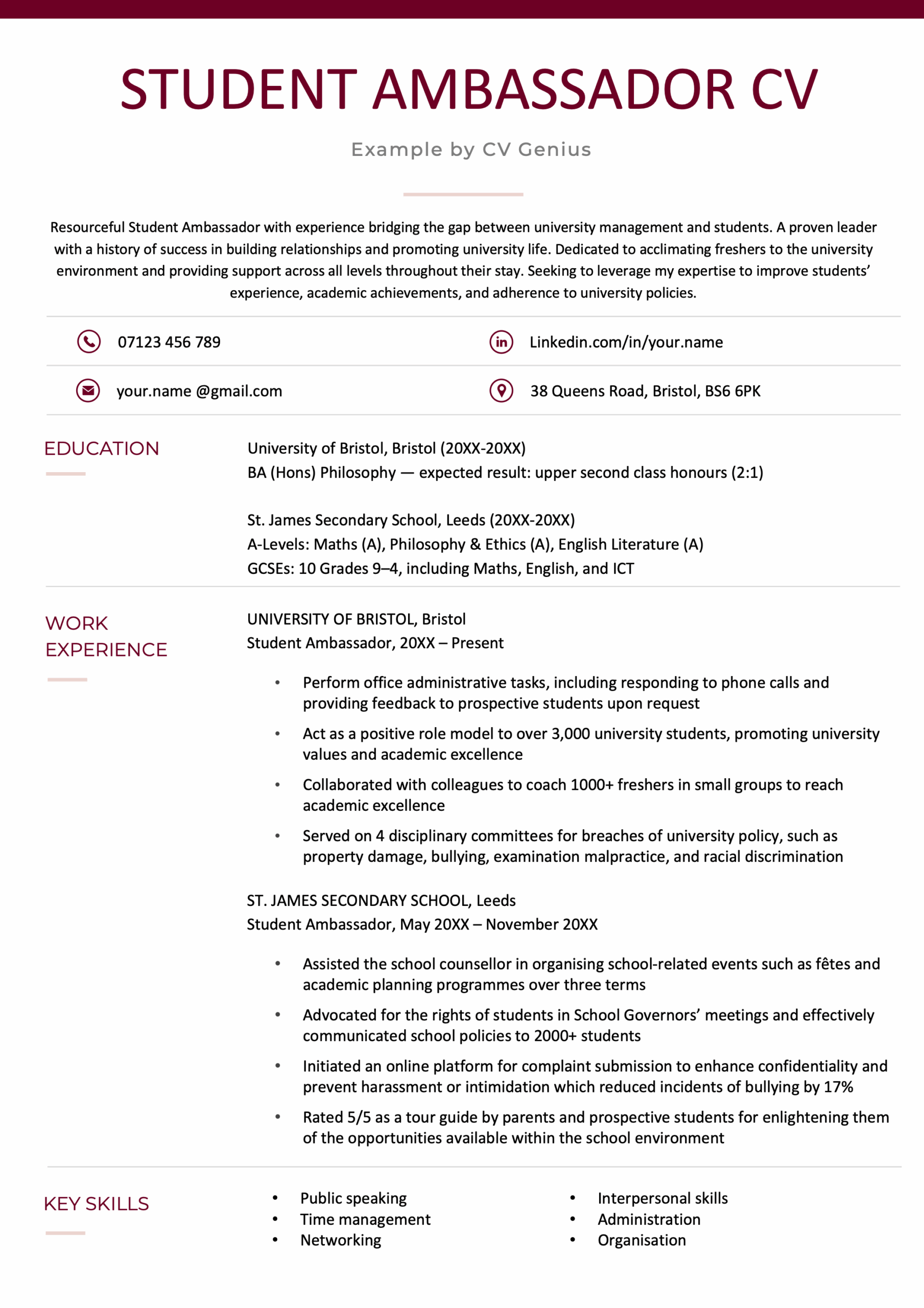 Student Ambassador CV Template (Text Format)