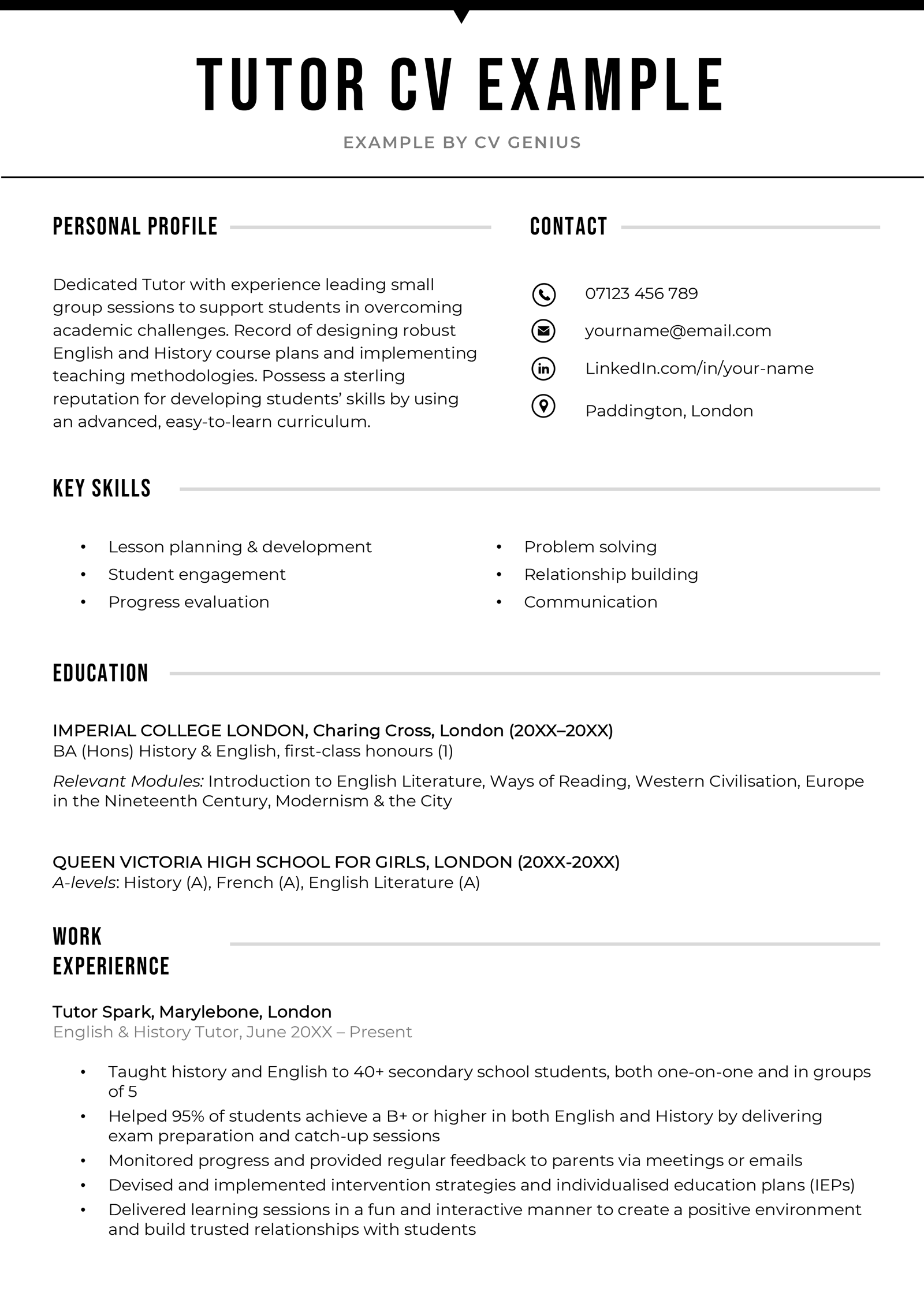 Tutor CV template (text format)