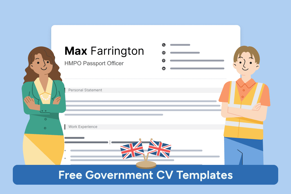 Government recruiters favour formal CV layouts and colours such as dark blue, green, red, or classic black — so all of our templates are designed to meet those expectations.
