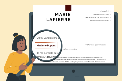 Si le nom et le genre de votre destinataire est indiqué dans l’offre d’emploi ou que vous l’avez trouvé via vos recherches, montrez que vous y avez prêté attention.