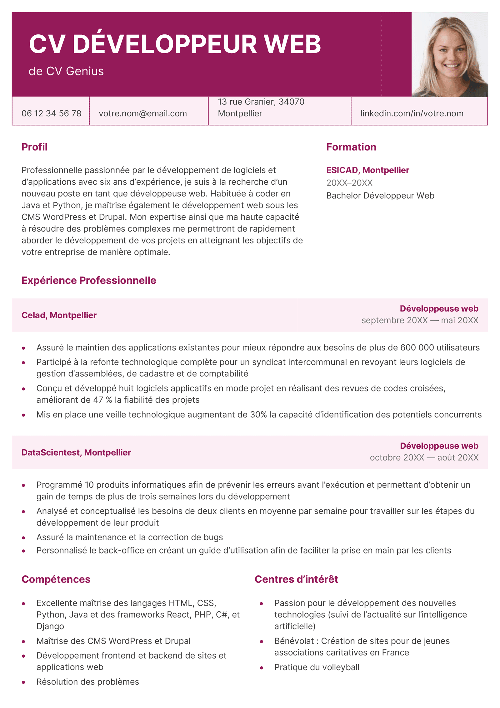 Email : votre.nom@gmail.com Portable : 06 12 34 56 78 Adresse : [code postal, ville] LinkedIn : linkedin.com/in/votre.nom