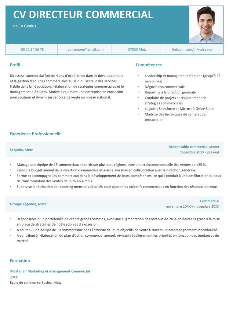 Exemple de CV directeur commercial débutant