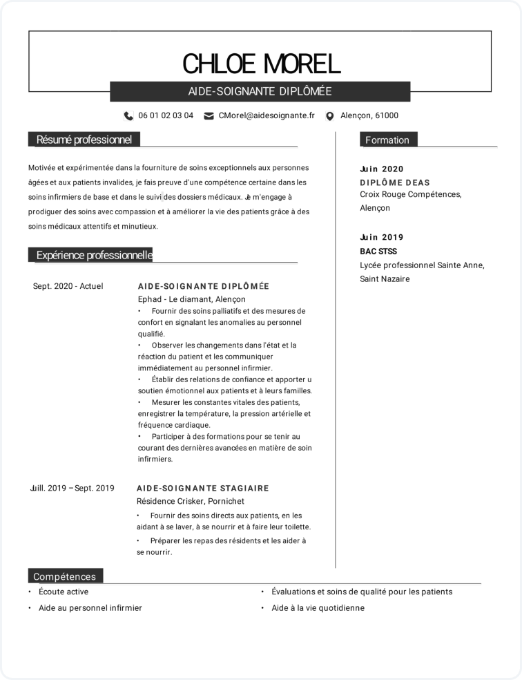 Personnalisez votre CV en toute simplicité avec notre interface intuitive. Saisissez le titre du poste et sélectionnez simplement les contenus pré-rédigés issus de nos experts. Une bonne solution si vous ne savez pas par où commencer.