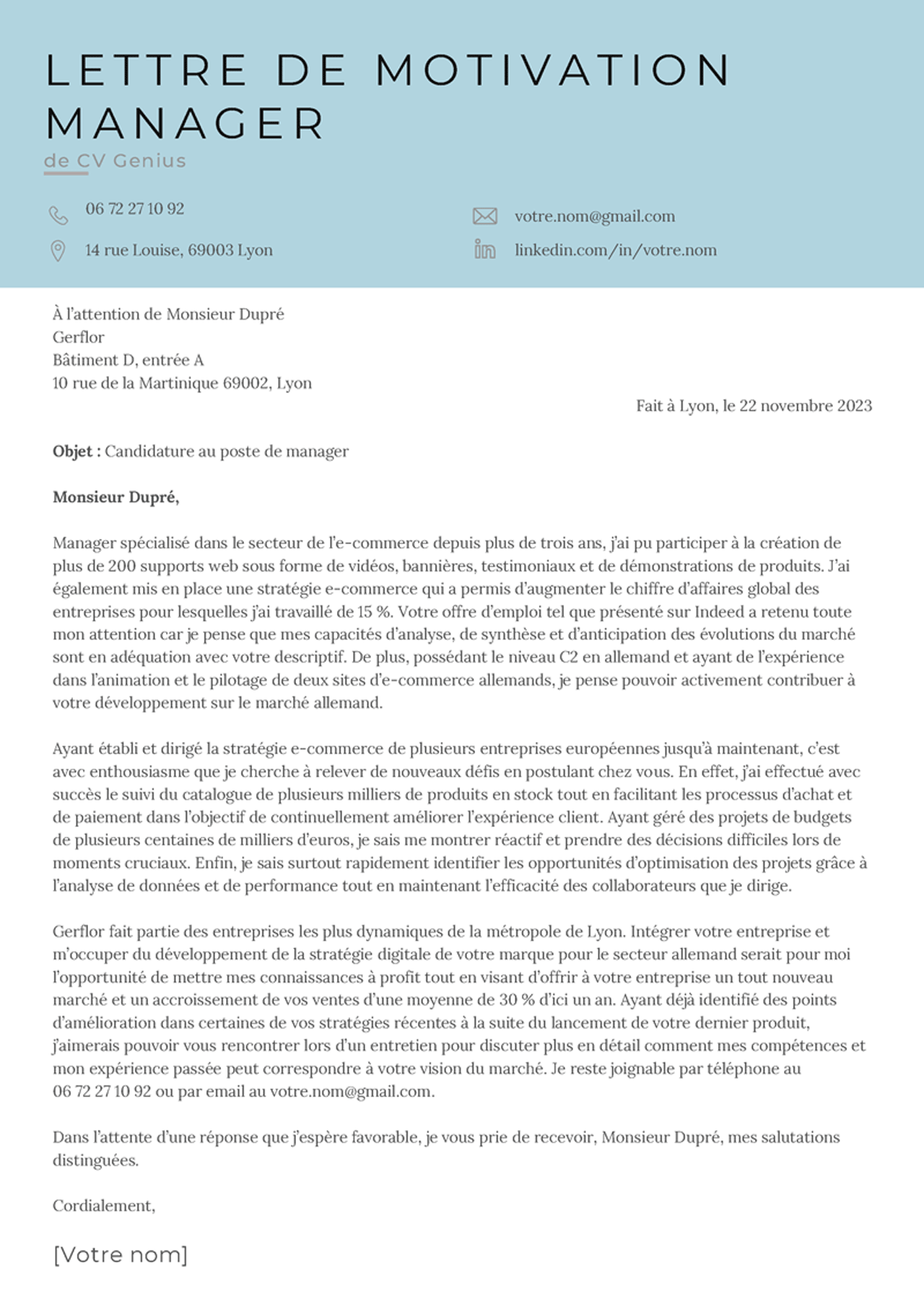 Lettre de motivation manager (format texte)